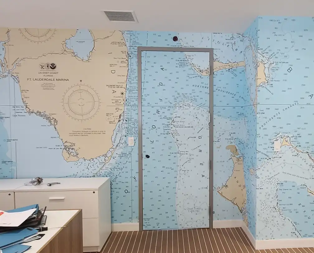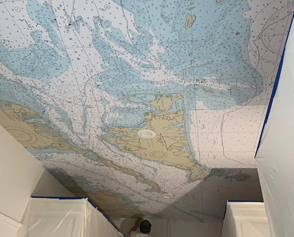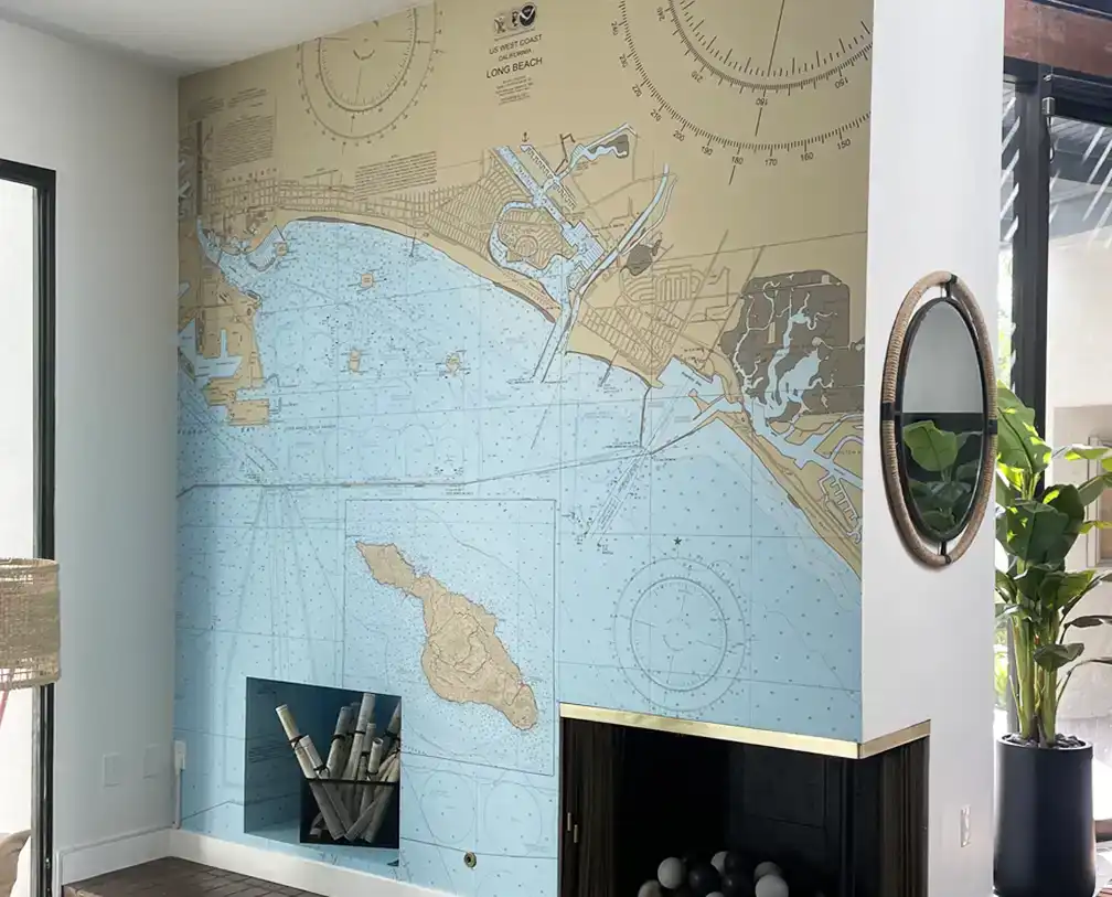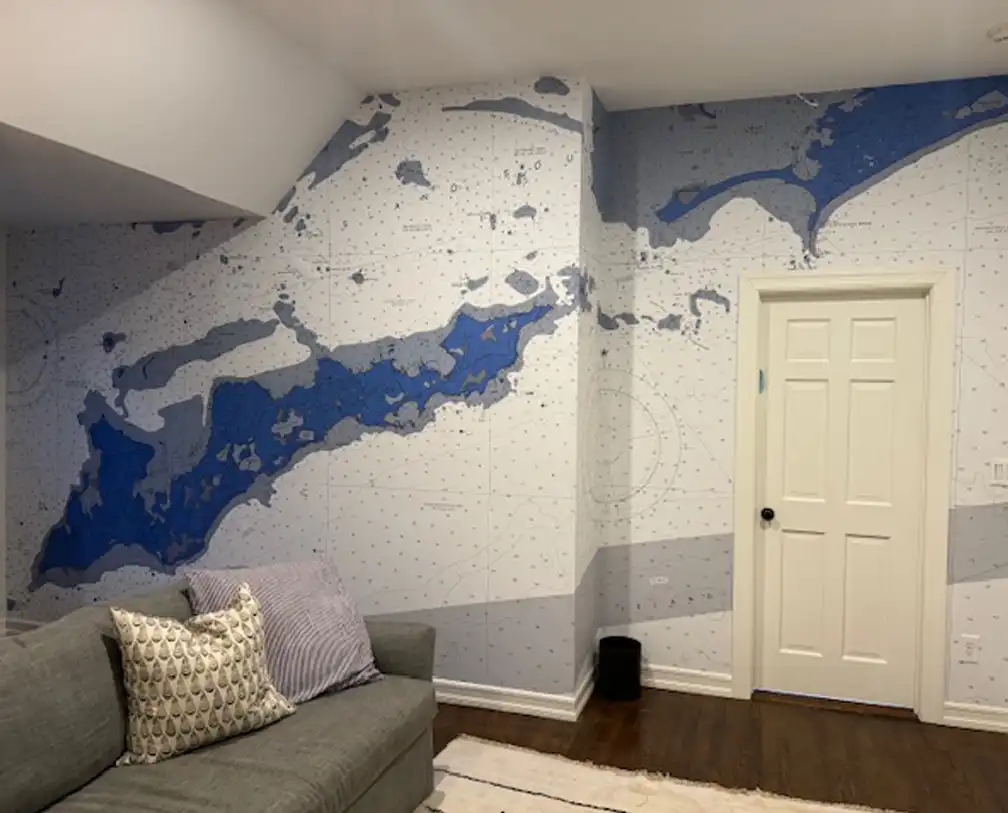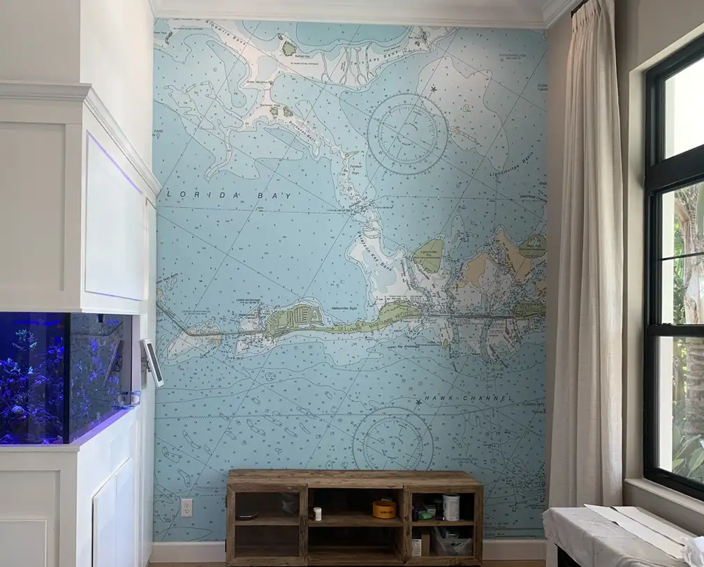 You will see our nautical map wallpaper all across the country from Restaurants and Hotels to the Smithsonian and your neighbors homes, we have covered it all. Scroll Down to View our Gallery of Completed Projects.