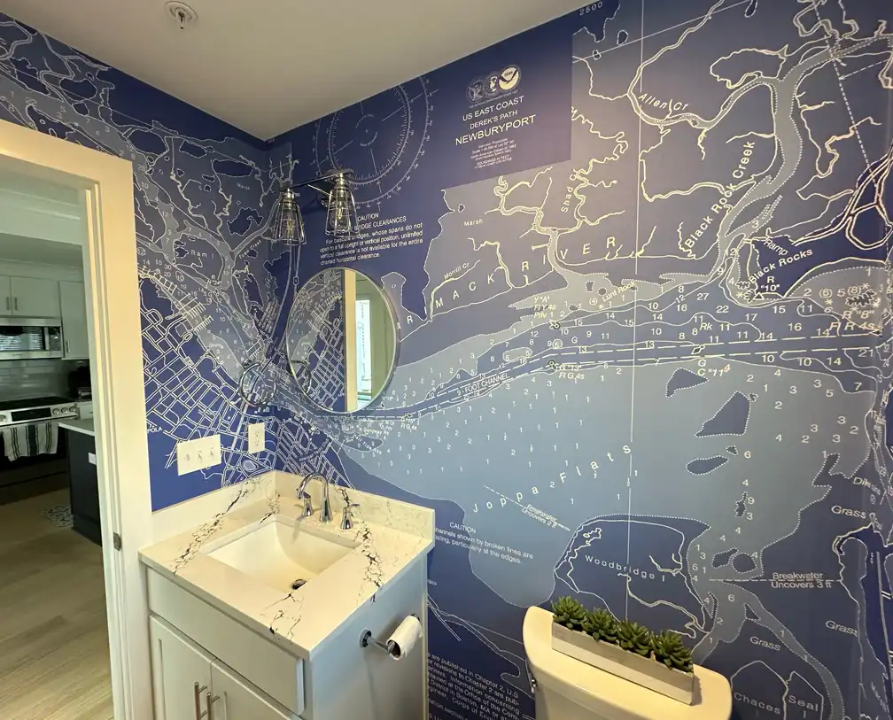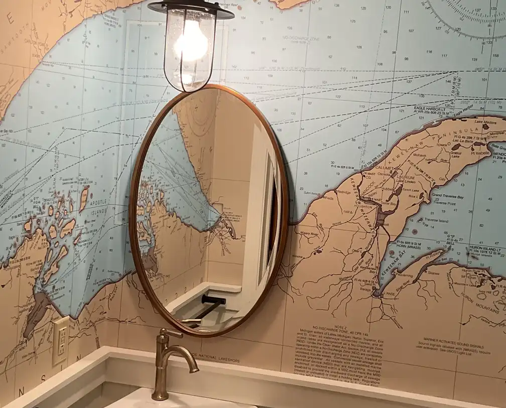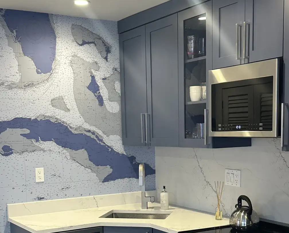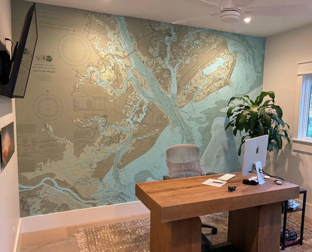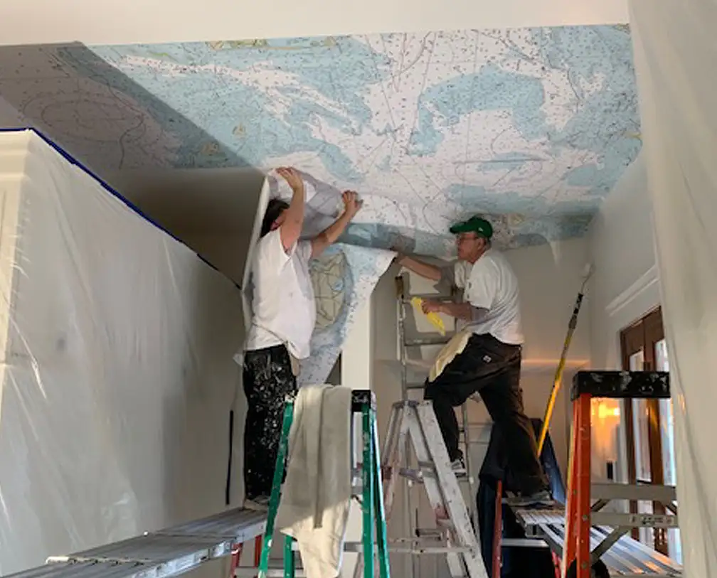 You will see our nautical map wallpaper all across the country from Restaurants and Hotels to the Smithsonian and your neighbors homes, we have covered it all. Scroll Down to View our Gallery of Completed Projects.