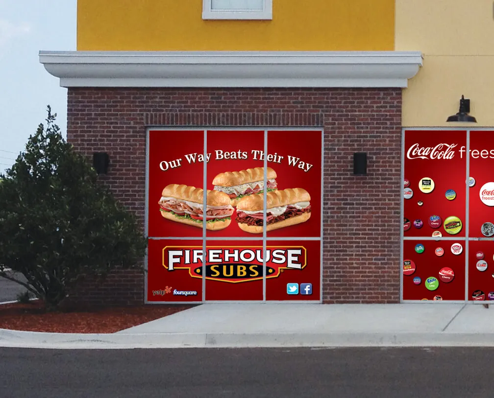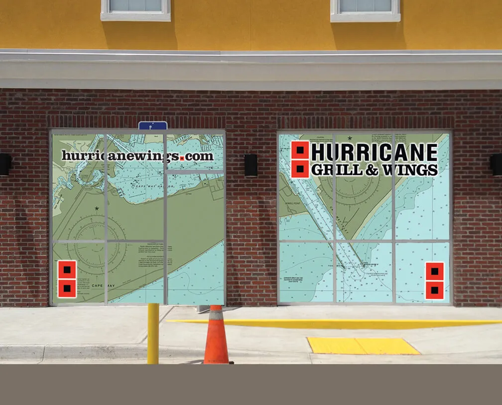 Window perf media is the product we use on windows-you can see out but you can't see in. It is a specialized media that is 50% covered with tiny holes. This is a great application for store fronts of all types. It is a great way to advertize and draw atttention using existing space you already own!